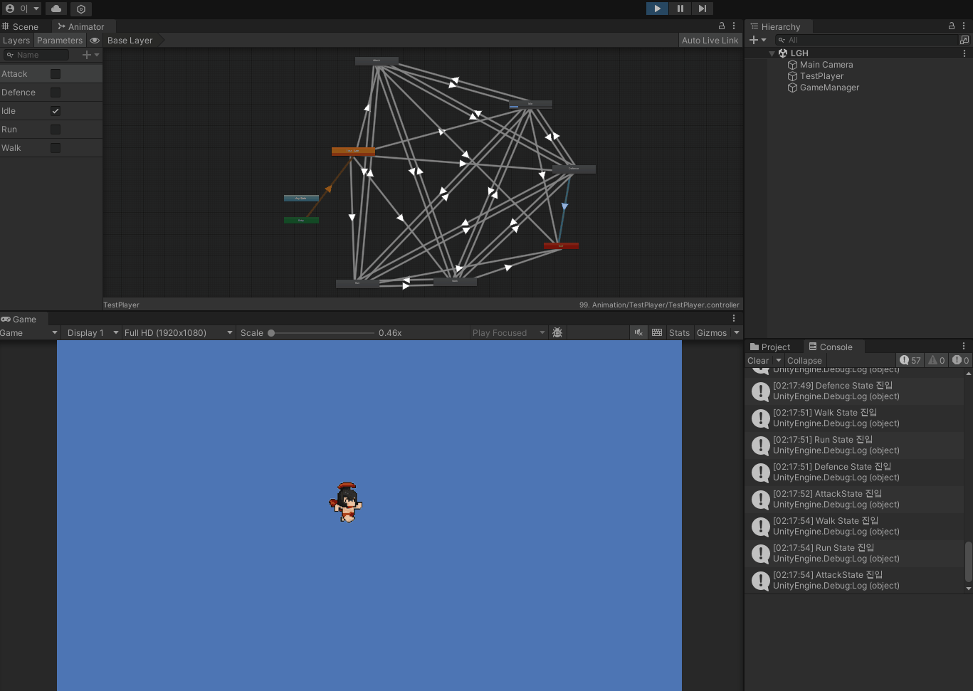 FSM으로 플레이어 이동 및 공격 및 방어를 구현해보면서 문제점이 하나 생겼다.
