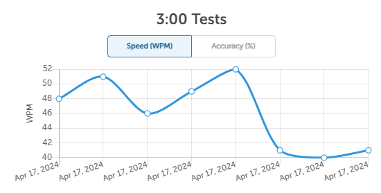 위 그래프는 3분 동안 타이핑하는 Test인데 보는 것과 같이 배운 이후에 오히려 생각을 많이하다보니 속도가 떨어지고 있다.