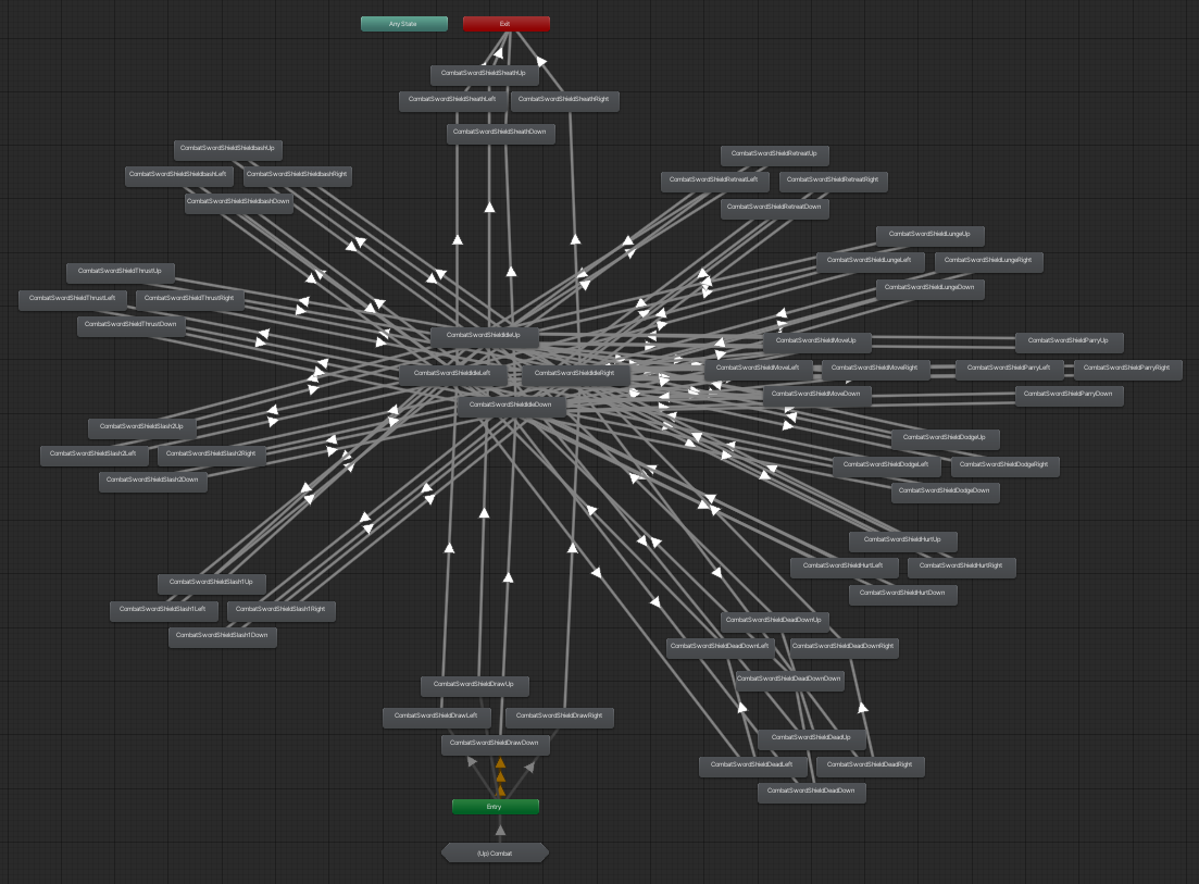 일단 상태가 너무 많다보니 Parameter도 많았고, Trigger로 활용됐지만 전부다 실행 뒤에 Idle로 돌아간다는 단점이 있다.